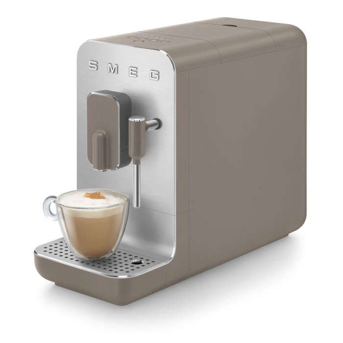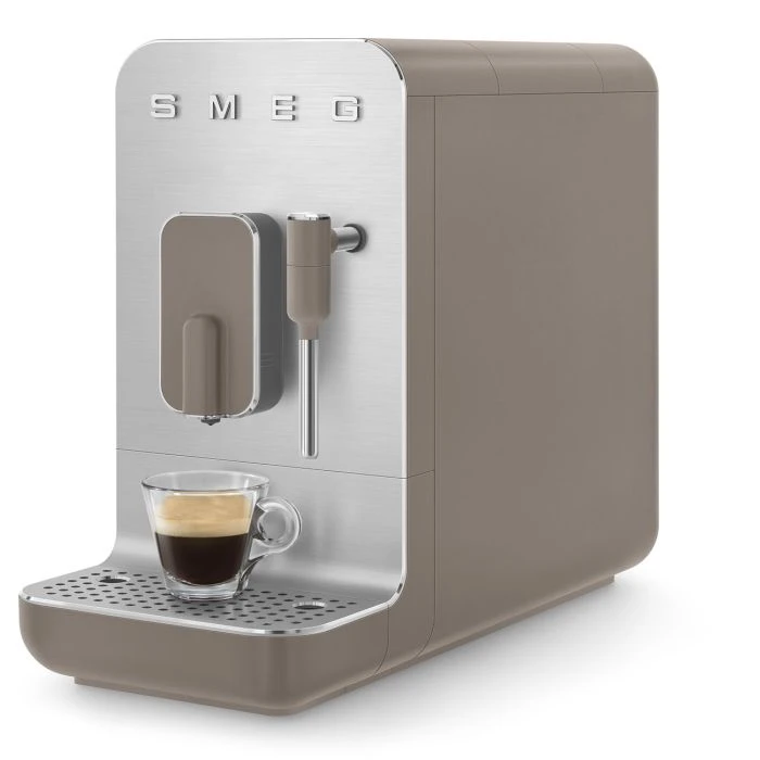 Smeg BCC02TPMEU. Tipo de producto: Máquina espresso, Máquina de café: Totalmente automática, Capacidad de reservorio de agua: 1,4 L, Café tipo de entrada: Granos de café, De café molido, Depósito para café preparado: Taza, Capacidad en tazas: 1 tazas, Molinillo integrado. Potencia: 1350 W. Color del producto: Gris pardo