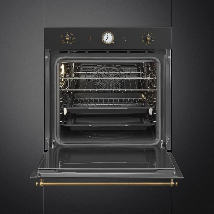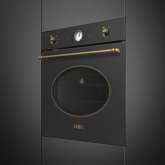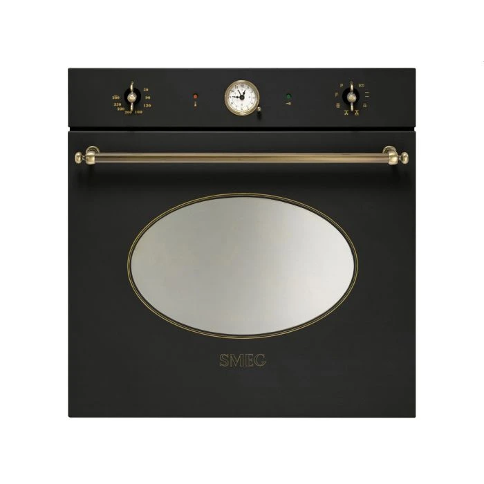 Smeg Coloniale SFP805AO. Tamaño del horno: Grande, Tipo de horno: Horno eléctrico, Total capacidad interior, horno (s): 79 L. Tipo de instalación: Integrado, Color del producto: Antracita, Tipo de control: Botones. Tipo de temporizador: Digital. Clase de eficiencia de energía: A, Consumo de energía (convencional): 1,09 kWh, Consumo de energía (convección forzada): 0,8 kWh. Cantidad de lámparas: 1 lámpara(s), Tipo de lámpara: Halógeno, Potencia de bombilla: 40 W