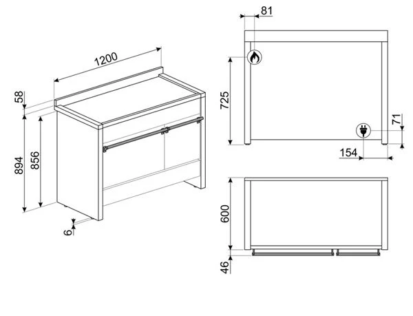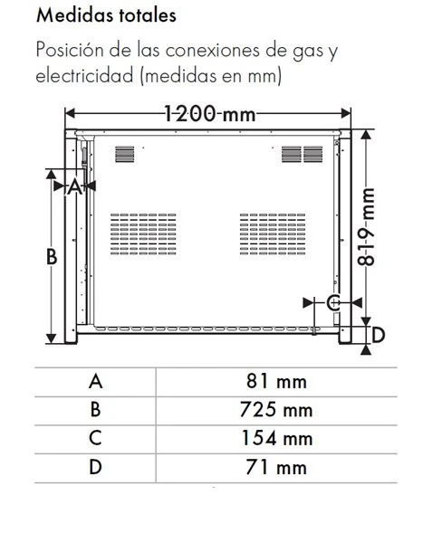 - Esta cocina mide 120 x 90 x 60 centímetros (ancho x alto x fondo)