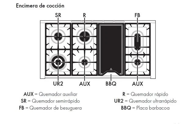 - La placa funciona con Gas Natural y tiene 6 zonas más una barbacoa