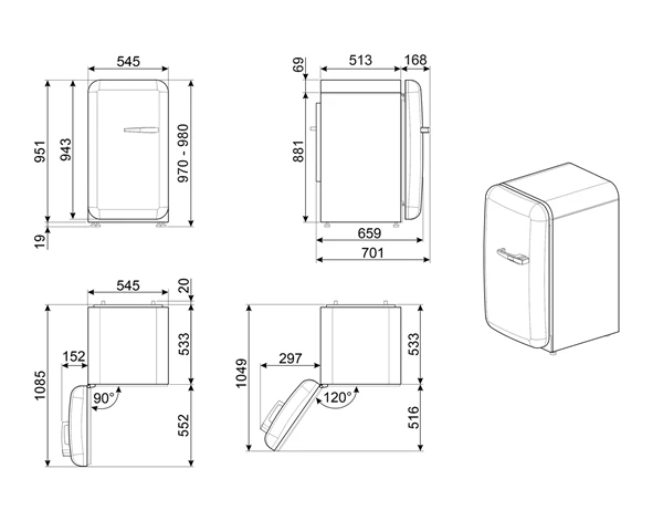 | Profundidad del producto con la puerta abierta a 90º | 1085 mm |