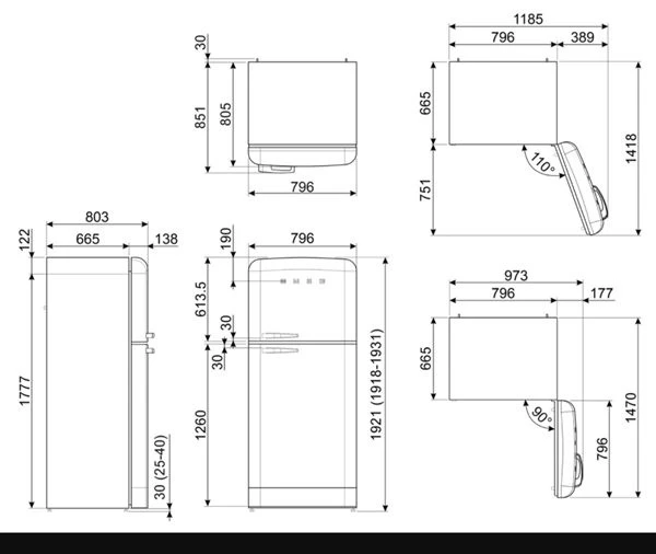 | Profundidad del producto con la puerta abierta a 90º | 1470 mm |