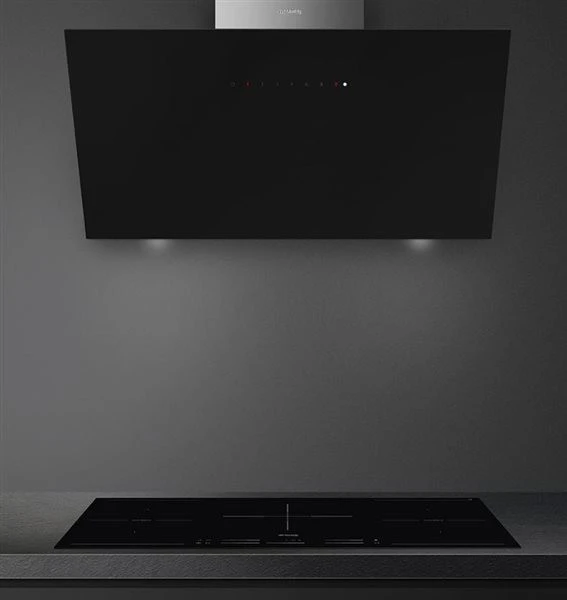 Libera tu cocina de humos y malos olores con la campana decorativa de pared de 90 Cm, con acabado en cristal negro Smeg KICV90BL.