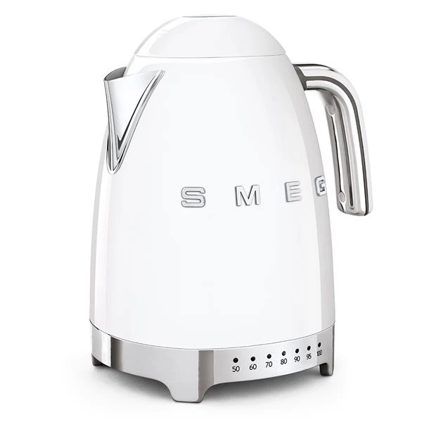 Hervidor SMEG KLF04WHEU, 1,7 litros de capacidad, línea años 50, 2400W, ajuste de temperatura en 7 posiciones.