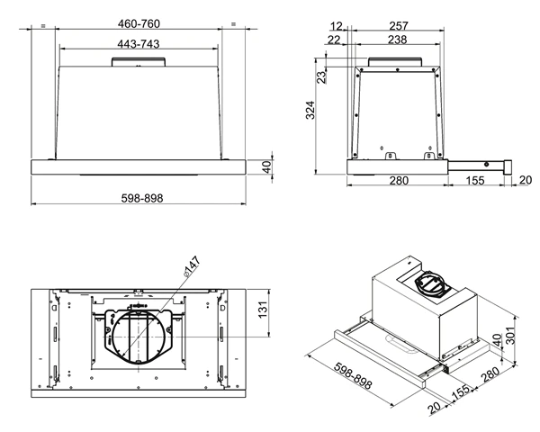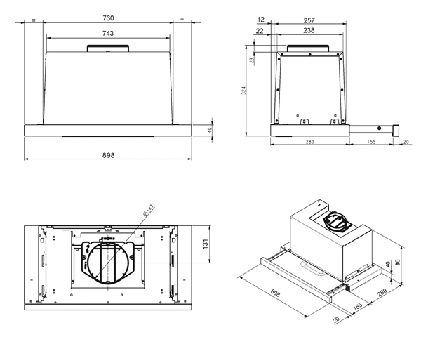| Distancia mínima desde la encimera ELÉCTRICA | 500 mm |