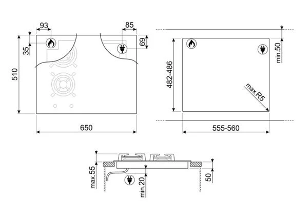 | Zona cocción Gas-AUX. | 12,10 kW |