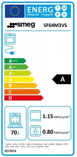Obtén los mejores resultados en la elaboración de tus recetas favoritas con el horno multifunción de clase de eficiencia energética A Smeg SF64M3VS.
