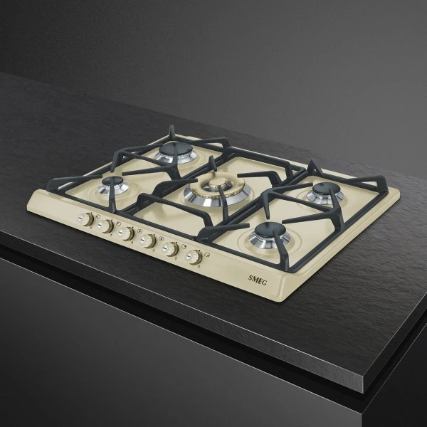 Encimera de Gas SMEG SR775PO en bonita tonalidad crema